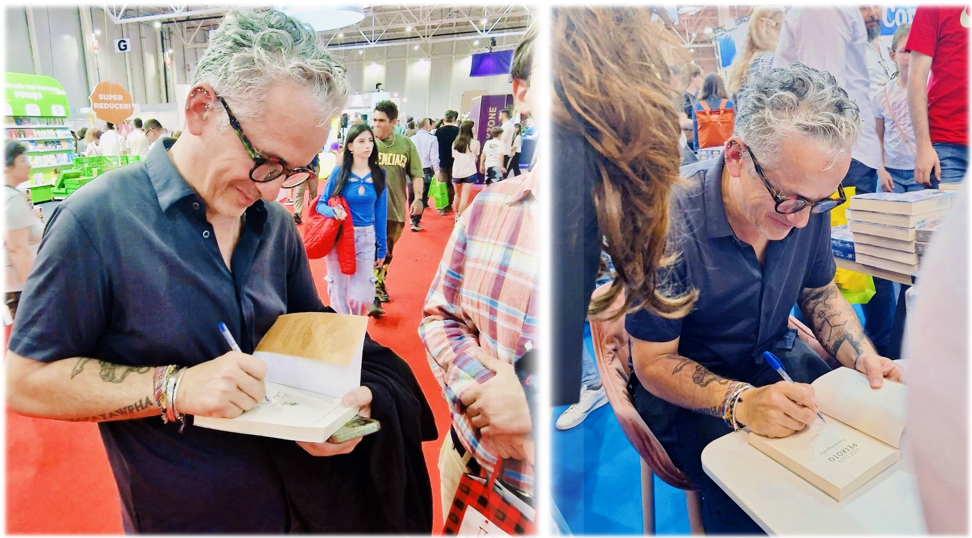 …ca să mă întorc de acolo decisă să o parcurg cap-coadă. Lasă că i-am admirat îndelung tatuajele lui Peixoto și, în general, lookul lui rock (video available pe pagina noastră de facebook 😎) , atât de neconform cu imaginea mea cam prăfuită despre scriitori. Lasă că m-a cucerit conferința pe care a susținut-o cu ocazia lansării unui alt roman al său – Câinii din Galveias.