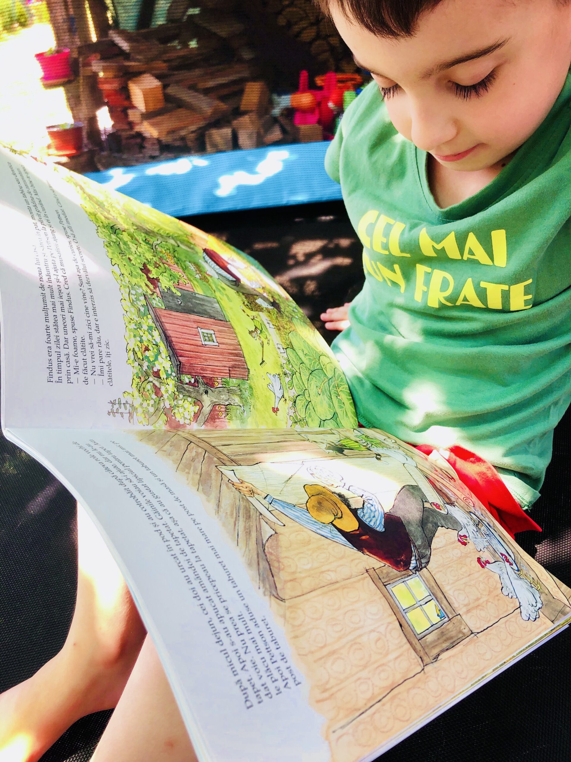 La scurt timp după ce am aflat de existența filmelor de lung metraj, care până azi au fost văzute și revăzute de ‘nșpe mii de ori, am descoperit existența cărților cu Findus & Co. Acestea sunt printre cele mai citite de subsemnatul și printre cele mai ascultate de puști. Pur și simplu, le adoră, desenele îi fură privirea și îl fac să râdă, iar faptul că uneori mai descoperă în ele câte un amănunt nou i se pare cel mai tare lucru din lume.