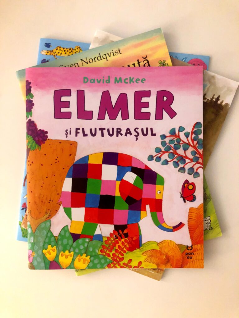 În afară de noile cărți cu Findus & Co, în bibliotecă și-a mai făcut loc și un personaj nou-nouț pentru noi, Elefantul Elmer. Acesta a fost alegerea fetiței mele care nu a putut rezista combinației dintre un elefant multicolor și fluturași. Momentan avem două cărți: Elmer și fluturașul și Elmer caută și găsește numere. Dar am sentimentul că vor urma și altele… Așa a fost și cu Findus…