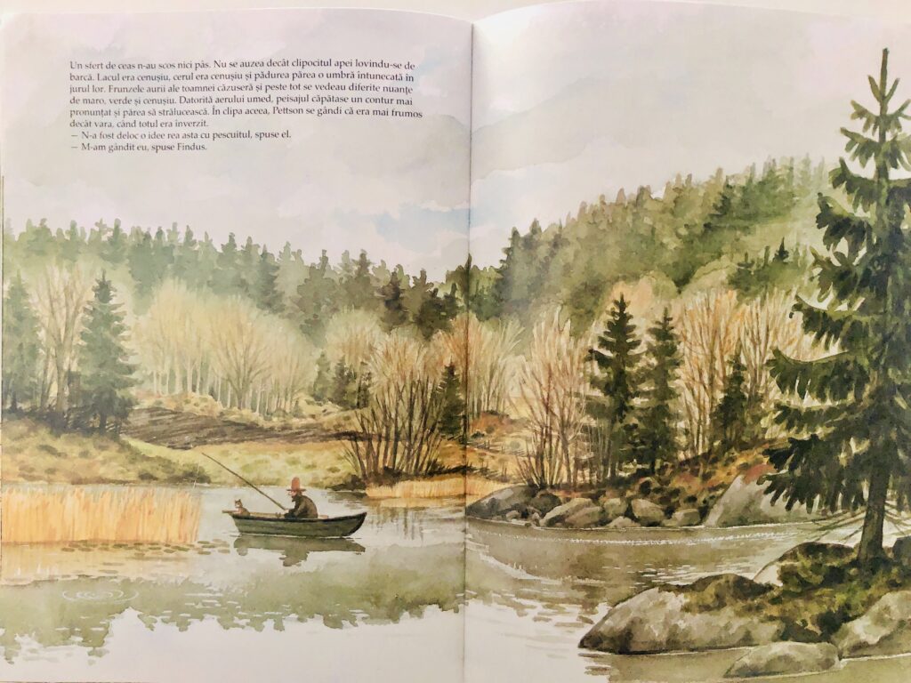 Cărticelele sunt scurte și se citesc foarte ușor. Desenele, foarte frumoase, ajută foarte mult la vizualizarea poveștii și la crearea unei atmosfere vesele. Chiar dacă tonul poveștii din Findus la pescuit pare trist și melancolic, năzbâtiile motanului sunt irezistibile și finalul m-a făcut să mă simt, la fel ca și Pettson, bine și optimist.